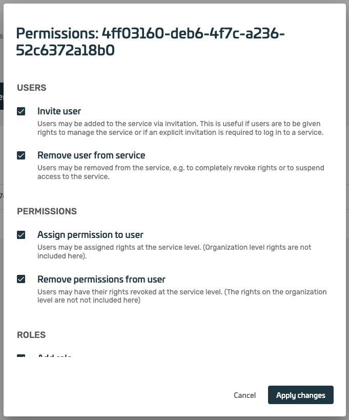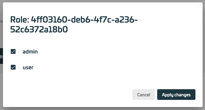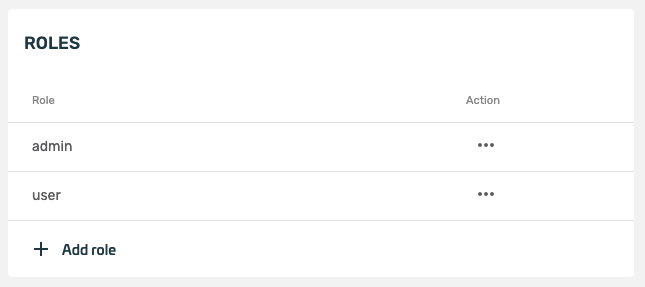 The Roles section lets the admin configure which roles are available in the client. Further a set of authenticators is assigned to each role, that the user has to use to successfully authenticate using that role. The standard set of roles contain the admin role, that is assigned automatically to the creator of the client. The user role is assigned to any other user of the client automatically.